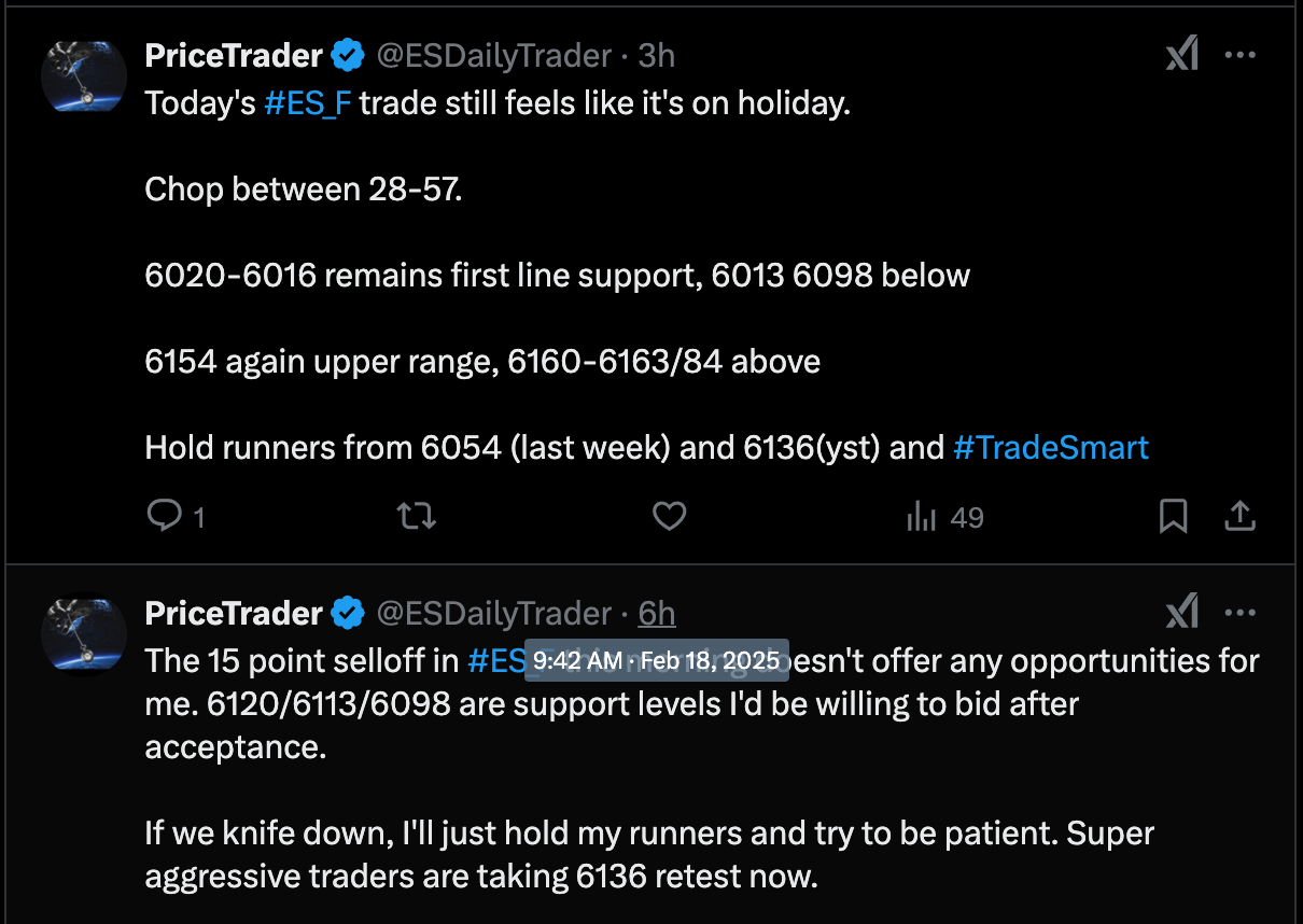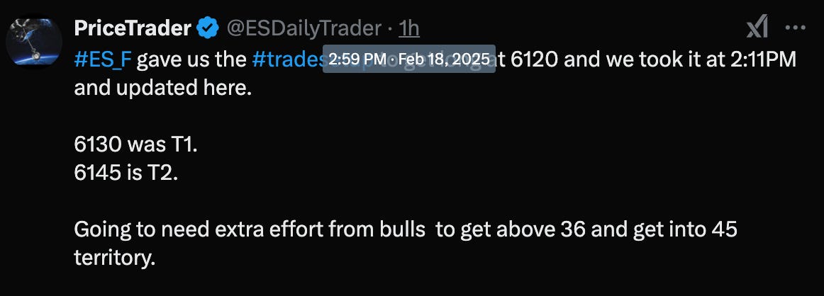 As noted on X at 9:42 this AM: ES wasn’t offering any opportunities on the initial sell but 6120 was the support level I’d be willing to bid after acceptance.