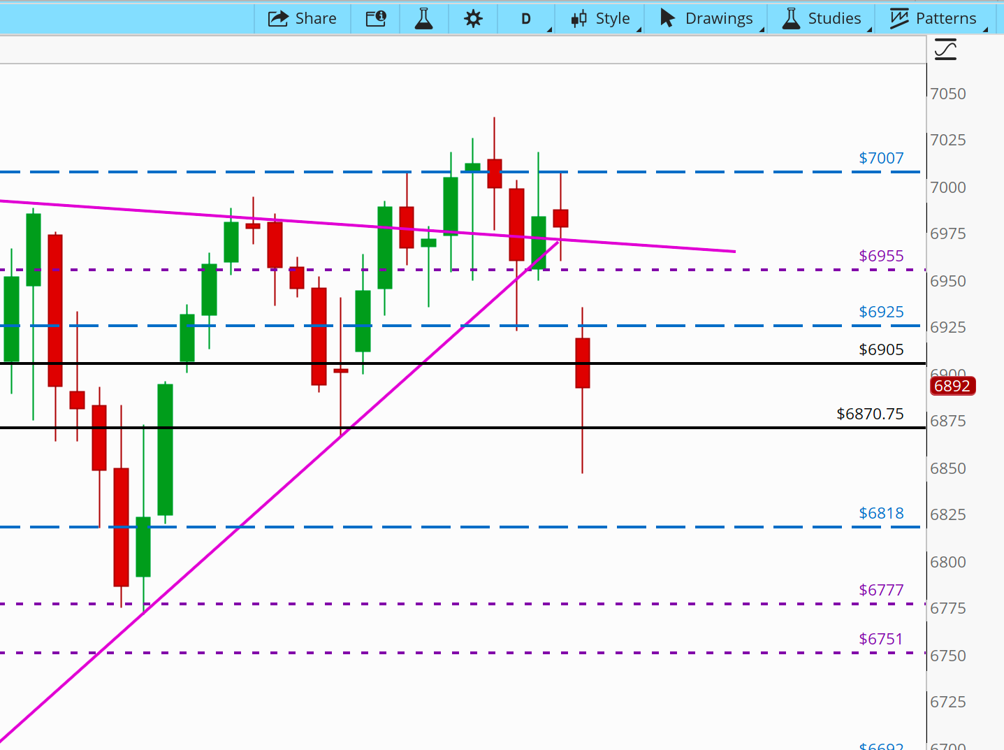 This morning, we’re trading around 6892, sitting under that 6905 line after printing down to 6846.75.