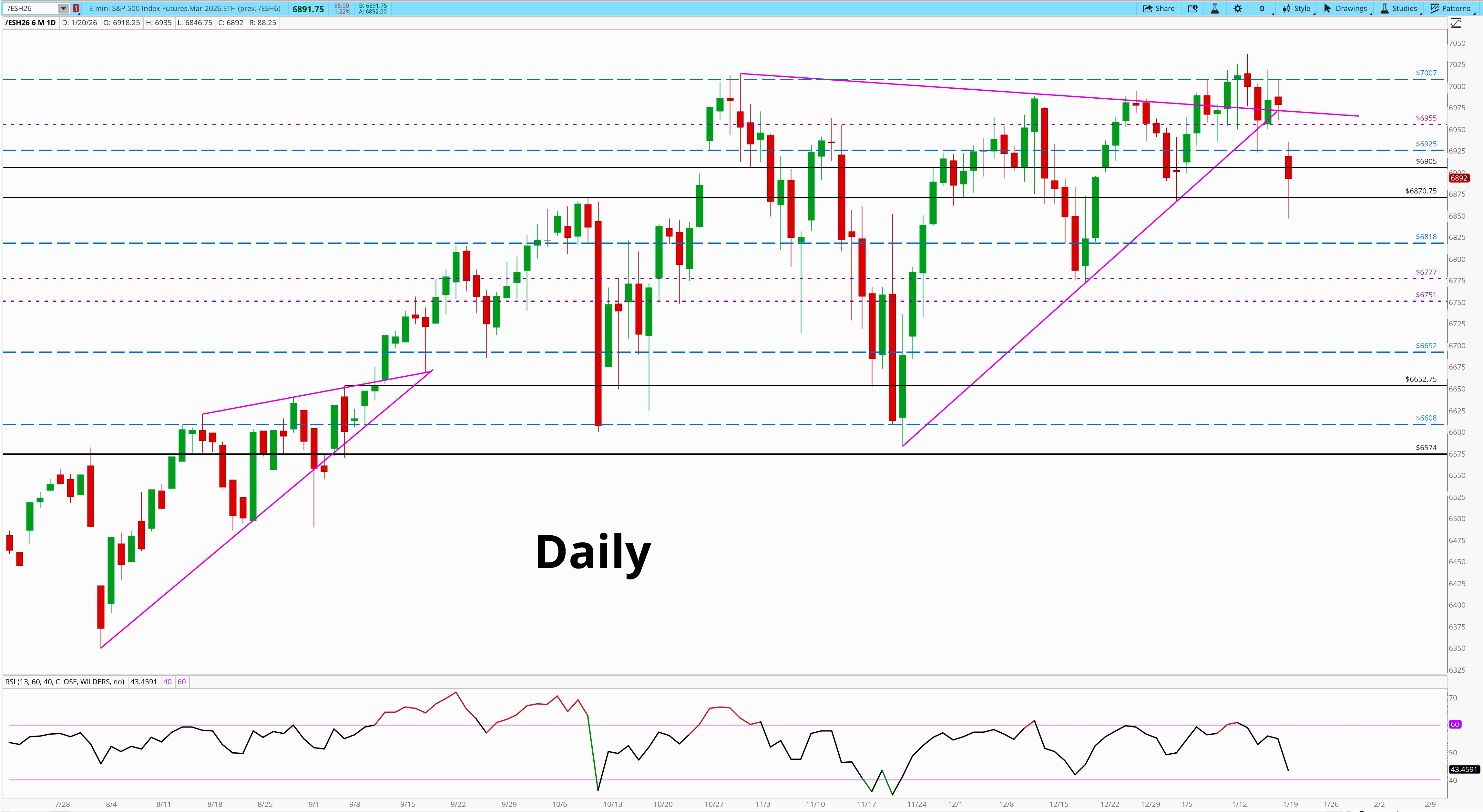 If ES is rotating inside a larger, six-month uptrend, 6692 is exactly where you’d expect the market to try to find its footing.