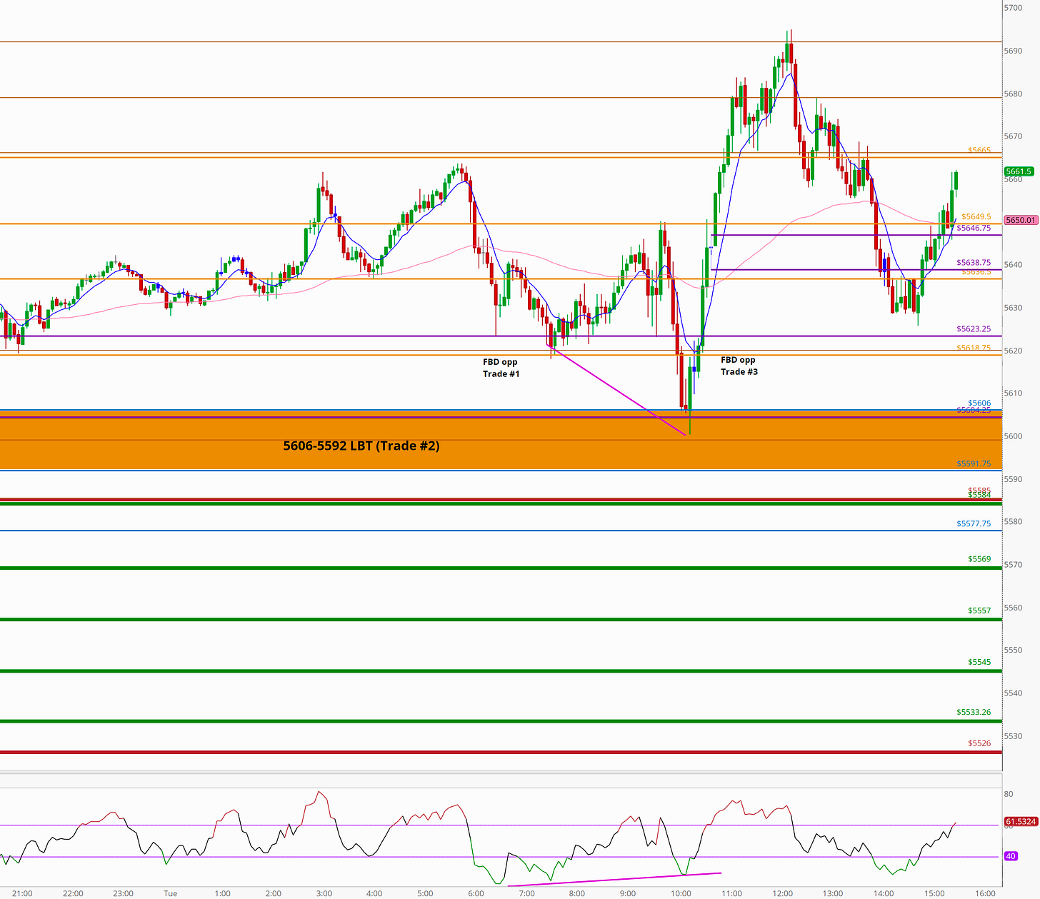-LTB 5606 - T1 5612(70%), 5624 T2 (10%) ,5649 T3 hit (5%). Stop at BE (15% runner. Stopped at 5620 this morning).