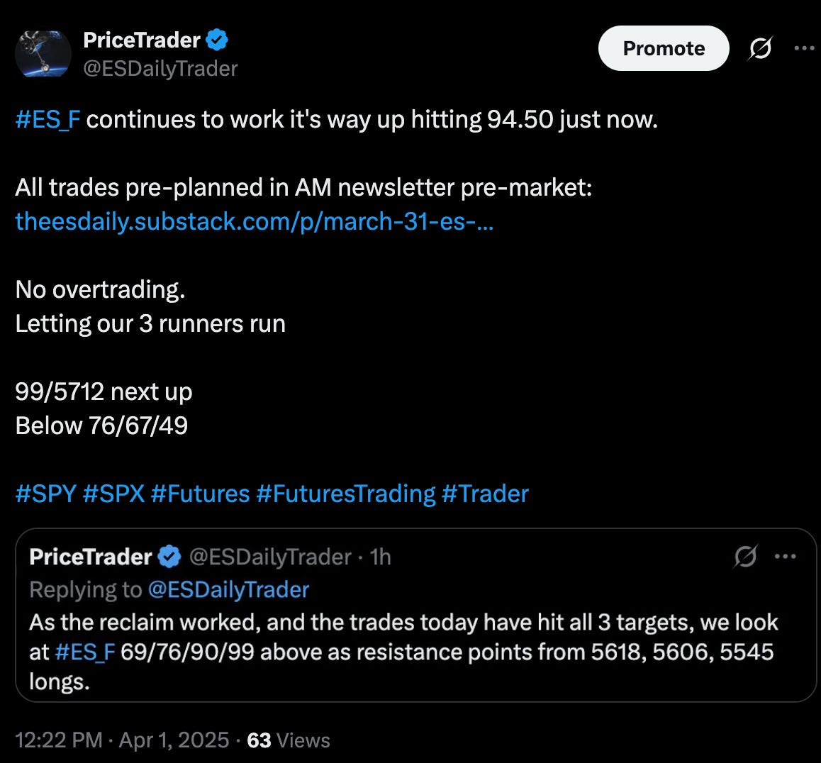 April 1 Recap - The Two Hr Rally That Continues To Pay Us