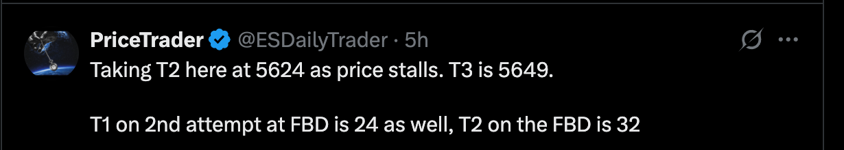 Trade #2 - Level trackback long from 5606. T1-T3 hit. Runner runs