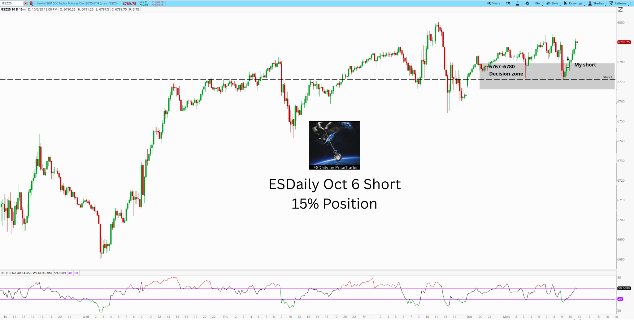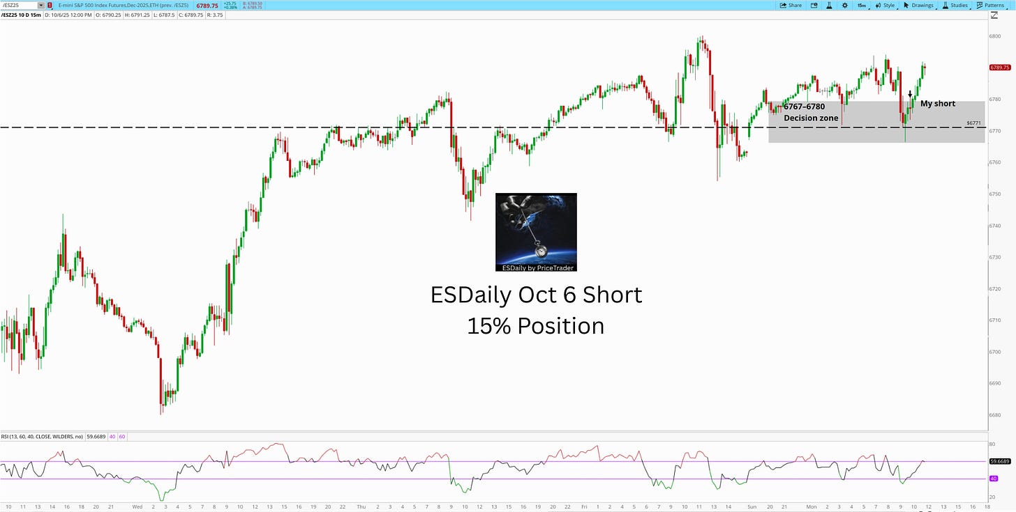 So I stepped in with a small 15% short at 6778.75, risk 6784.75, aiming for 67 and 56.
