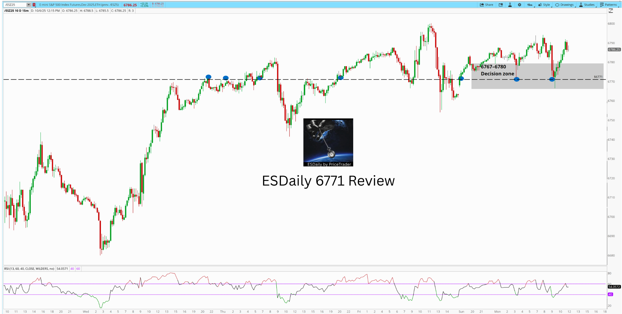 By late morning, ES had flushed to 6766, reclaimed 6771, and rotated back toward 6780.