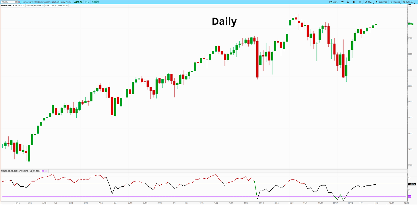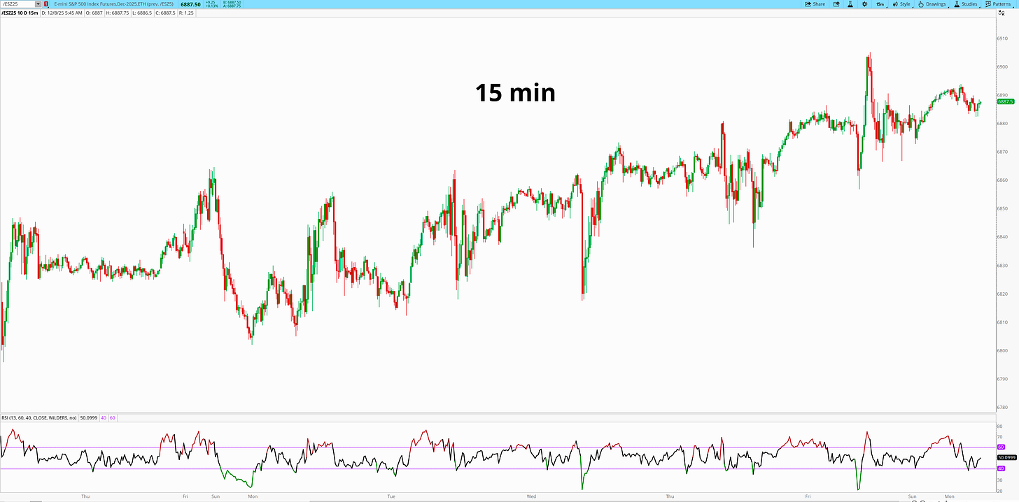 We spent five straight sessions underneath 6900, the tightest coil in recent memory. We’re pressing into the same supply that has been sitting there since the October divergence. Price kept pushing into it, but it never expanded. Every attempt at strength kept ending in the same place: stalled candles, stalled momentum, stalled conviction.