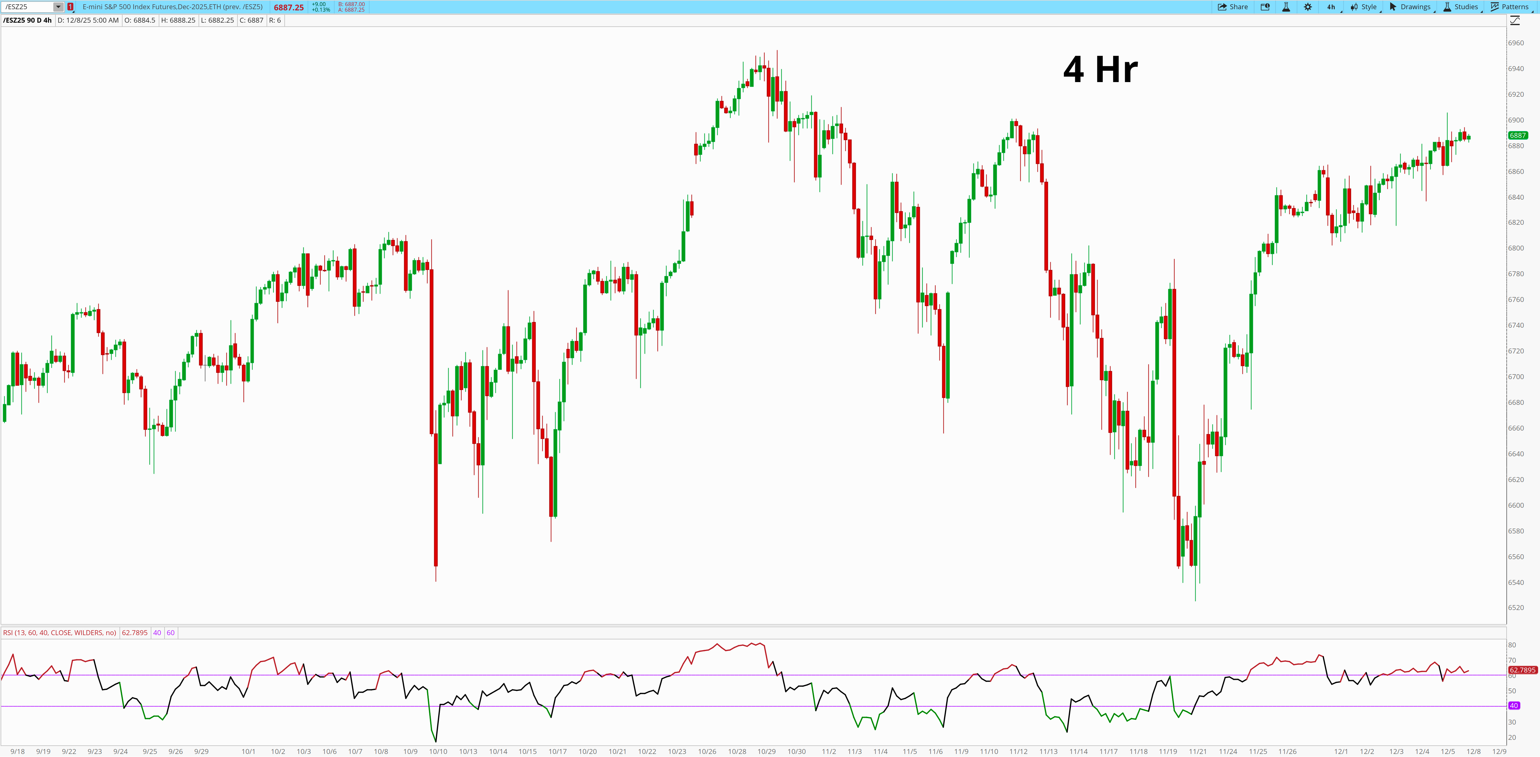 Last week, the 4h kept absorbing every dip into the 6852 and the 6864, but it never pushed with intent. That dynamic is still in place. We’re inching higher, printing a string of higher lows, but none of them have expanded into a real impulse. The structure looks like a slow push into resistance, not a breakout forming underneath it.