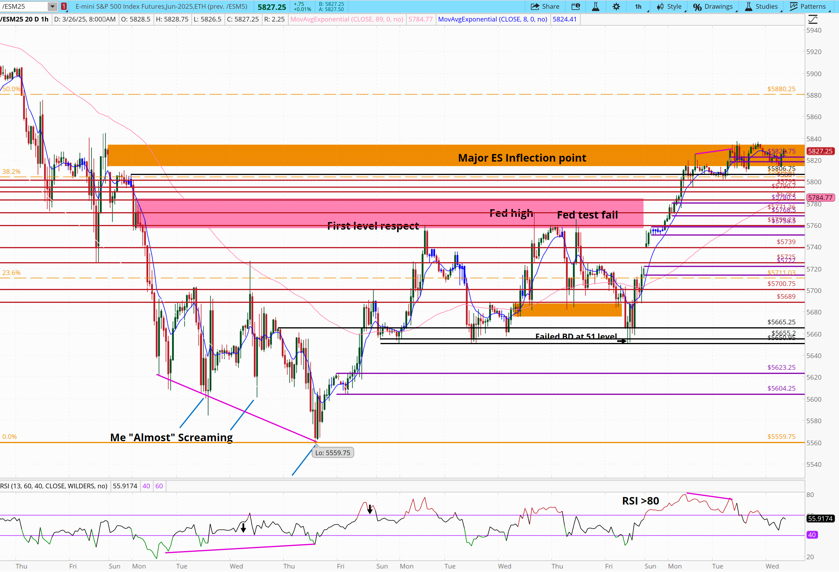 After a Friday failed breakdown at 5651, where we have our runner from, we’ve rallied right up into the Major ES Inflection Point
