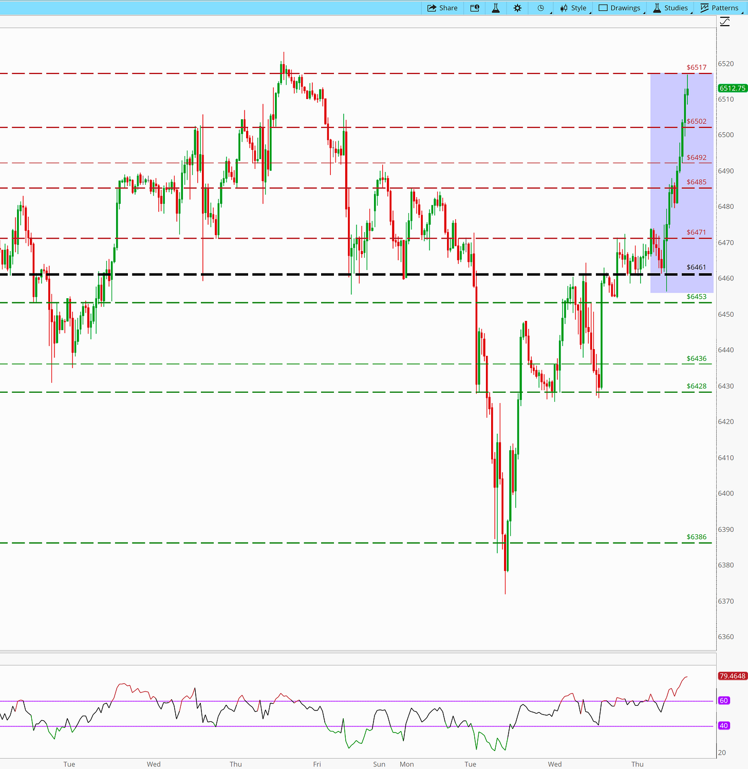 We opened at 6471, probed 6456 early, and then ripped straight through every band of supply all session long, closing near 6515. That kind of directional conviction clears out weak hands and gives us much more clarity heading into tomorrow.
