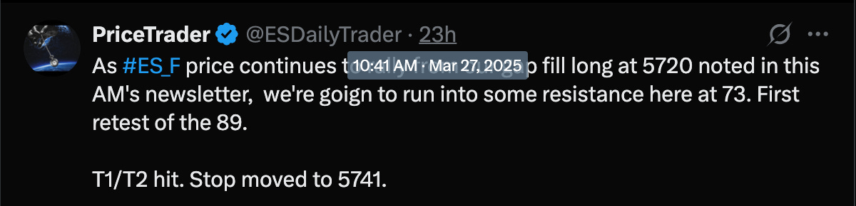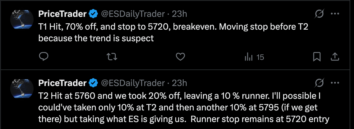 By 10:41AM we hit T1 for 22 points and T2 for 40 points, referencing the trade and targets hit here on X: