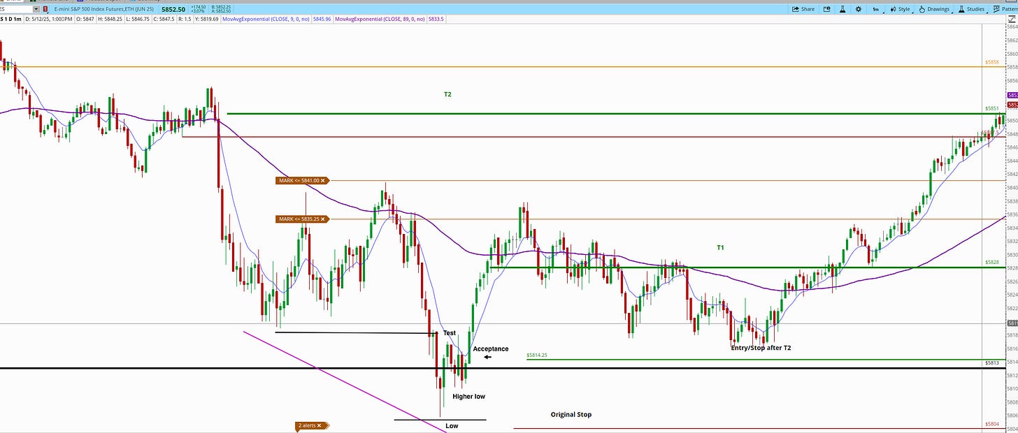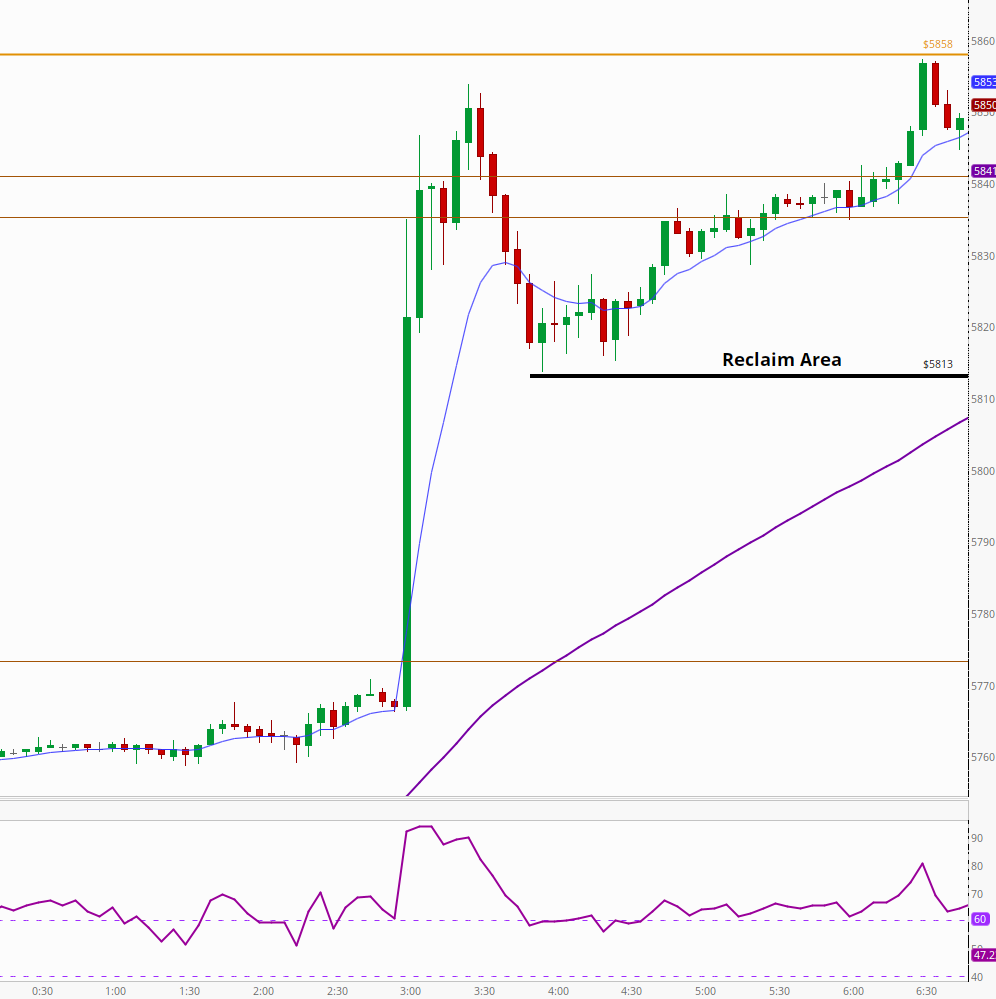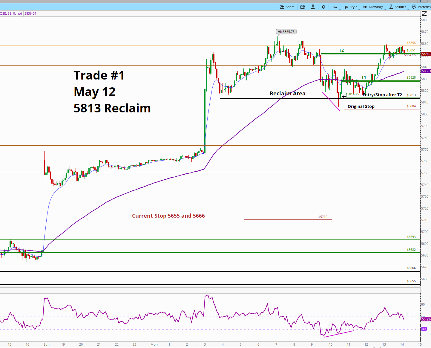 I wasn’t convinced 5813 was a clean reclaim level unless it first proved itself as support. I needed the flush first. Then the reclaim.