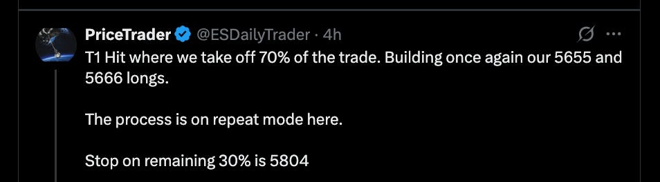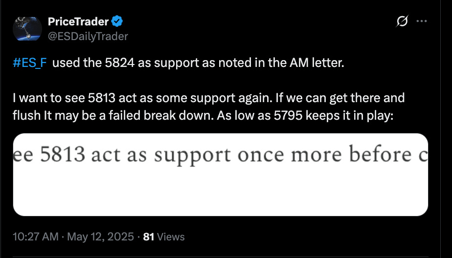 At 10:27AM I wrote this on X about the potential to see this playout as a trade for us, noting I wouldn’t want to see a breach beneath 5795.