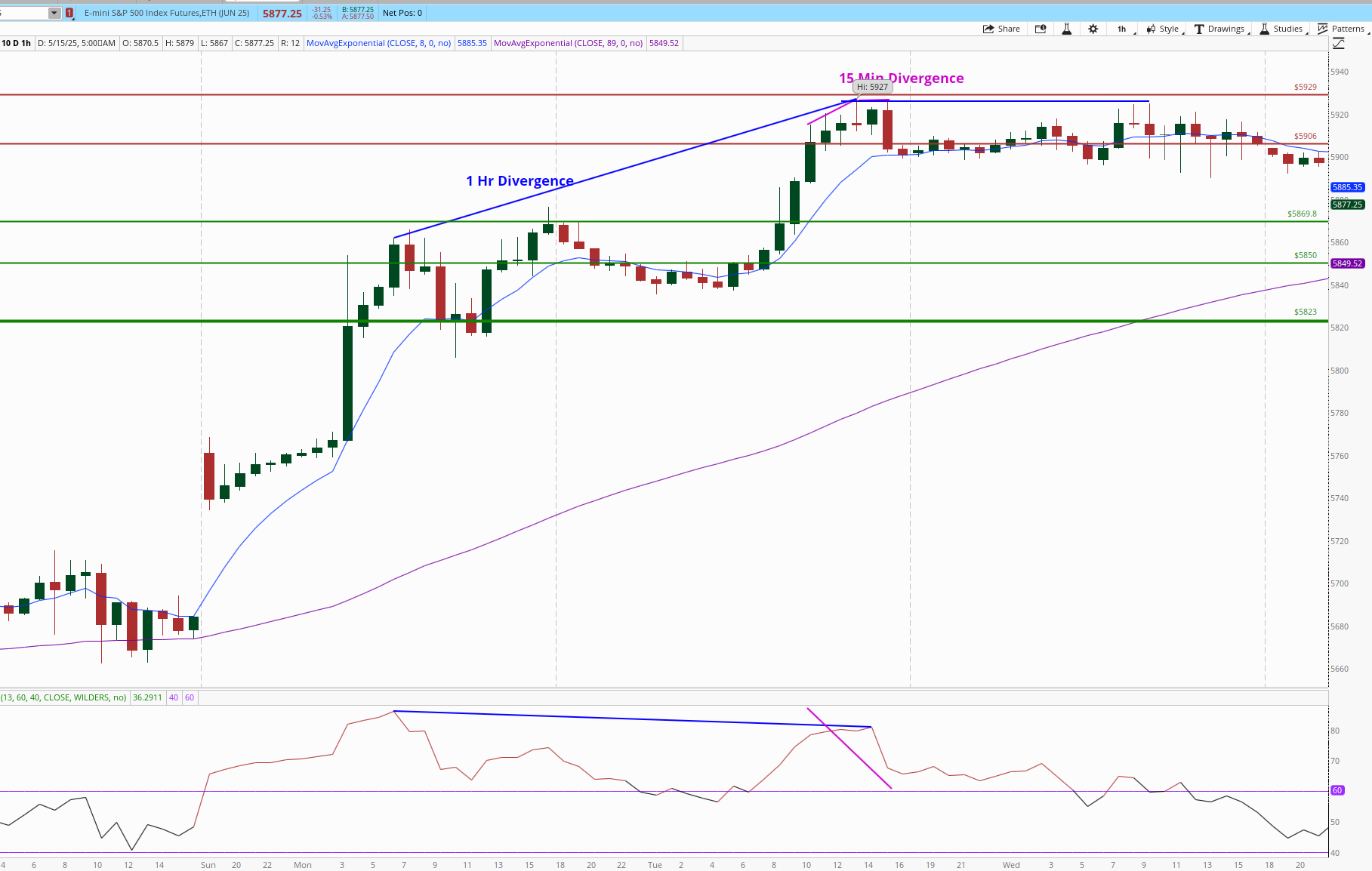 The crowd and newswires were euphoric.But we had divergence on multiple time frames: The 1 Hr and 15 min chart