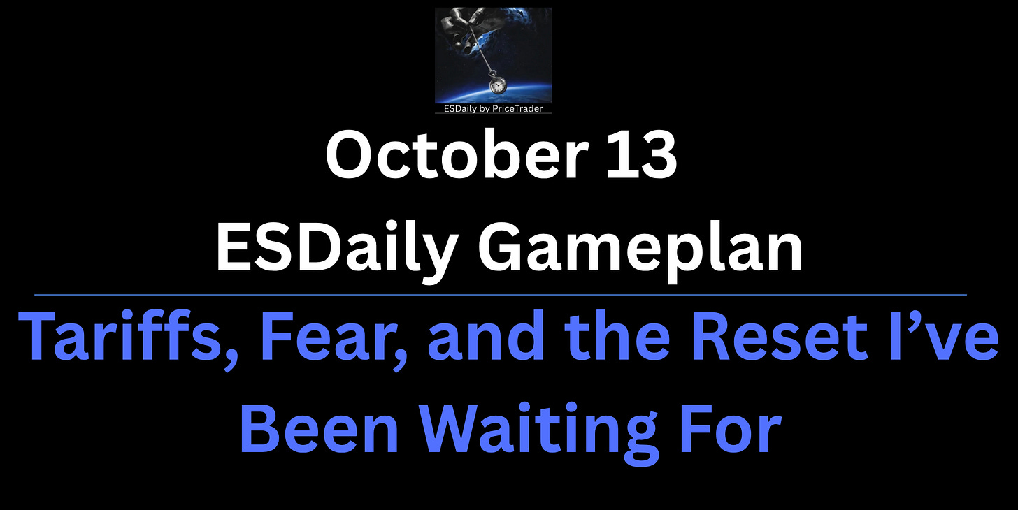 The administration announced a 100% tariff on Chinese goods. Over the next eight hours, the market unraveled. ES dropped more than 250 points from the week’s highs, erasing nearly every gain from September.