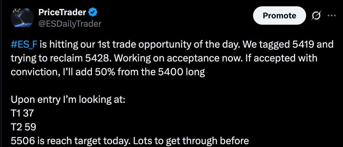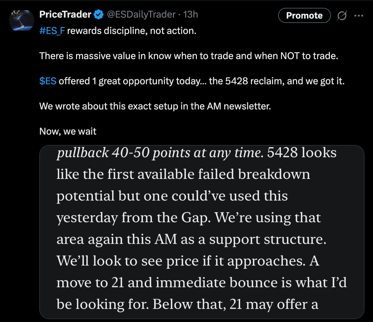5428 was the reclaim trade of the day (the only one we took), and price rallied to 5485.