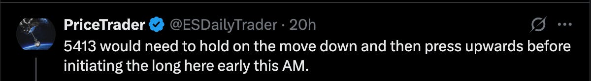At 5391, bears thought that they were in business, but it was a failed breakdown (one of our core setups). Traders who know how to trade waited for 5400 reclaim, bought (like we did) and saw price intraday trend to 5479.25